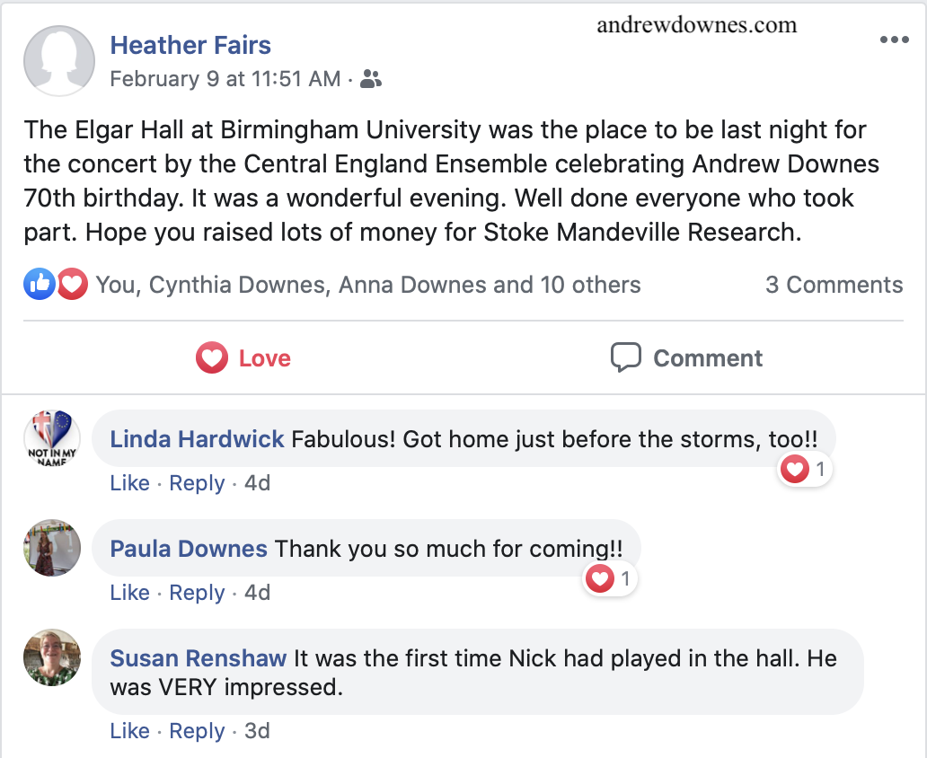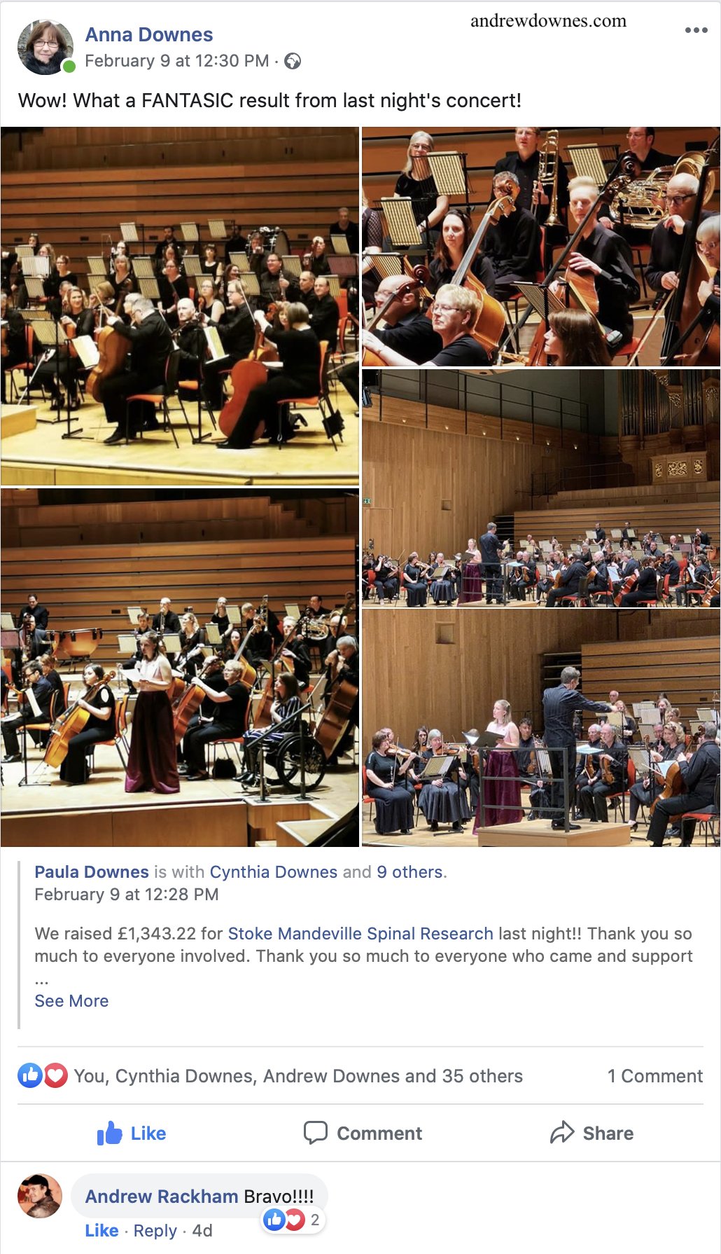 Our year of concerts, #andrewdownes70, is raising money for Stoke Mandeville Spinal Research, since my Dad sadly broke his back 10 years ago and received amazing care at Stoke Mandeville Hospital, where they helped him to learn how to live as a paraplegic. Many of you have kindly donated already via eventbrite. There will also be a collection during the interval and at the end of the concert.
