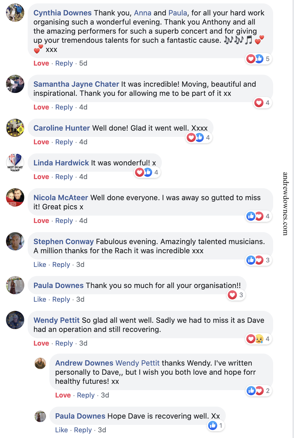 Before I go I would like to say a huge thank you to all those who are involved in tonight's performance and the huge support you have given our family. I would like to thank my sister Anna in particular for bringing all these wonderful performers together tonight.