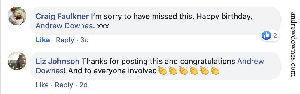 Andrew Downes then wheeled on stage to rapturous applause, which segued into "Happy Birthday", which can be heard here.