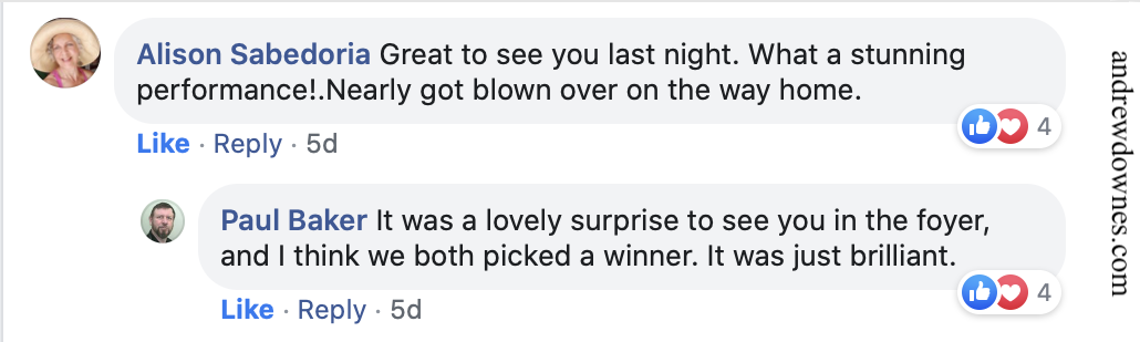 My Dad is such a prolific composer, it is impossible for me to tell you all about him in a short speech. To find out more, do visit andrewdownes.com, where you will find information on all his works; recordings; films; downloadable sheet music; a Blog written by his wife and publisher, Cynthia Downes; and a podcast series hosted by me. You can also buy some of his CDs in the foyer during the interval.