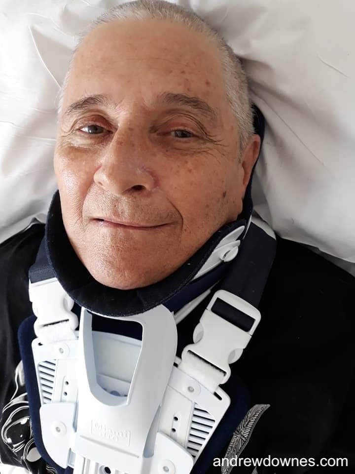 Andrew in his neckbrace in Coventry Univeristy Hospital