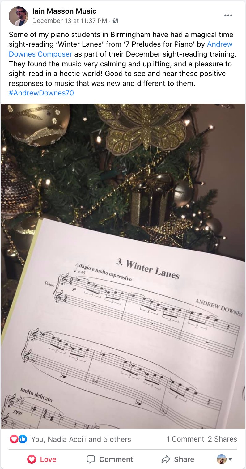 Tuesday November 17th 2020 Launch of new page: ISM Journal articles about Andrew Downes About his work as Head of Composition and Creative Studies at Royal Birmingham Conservatoire, and his performances from the 1990s onwards.