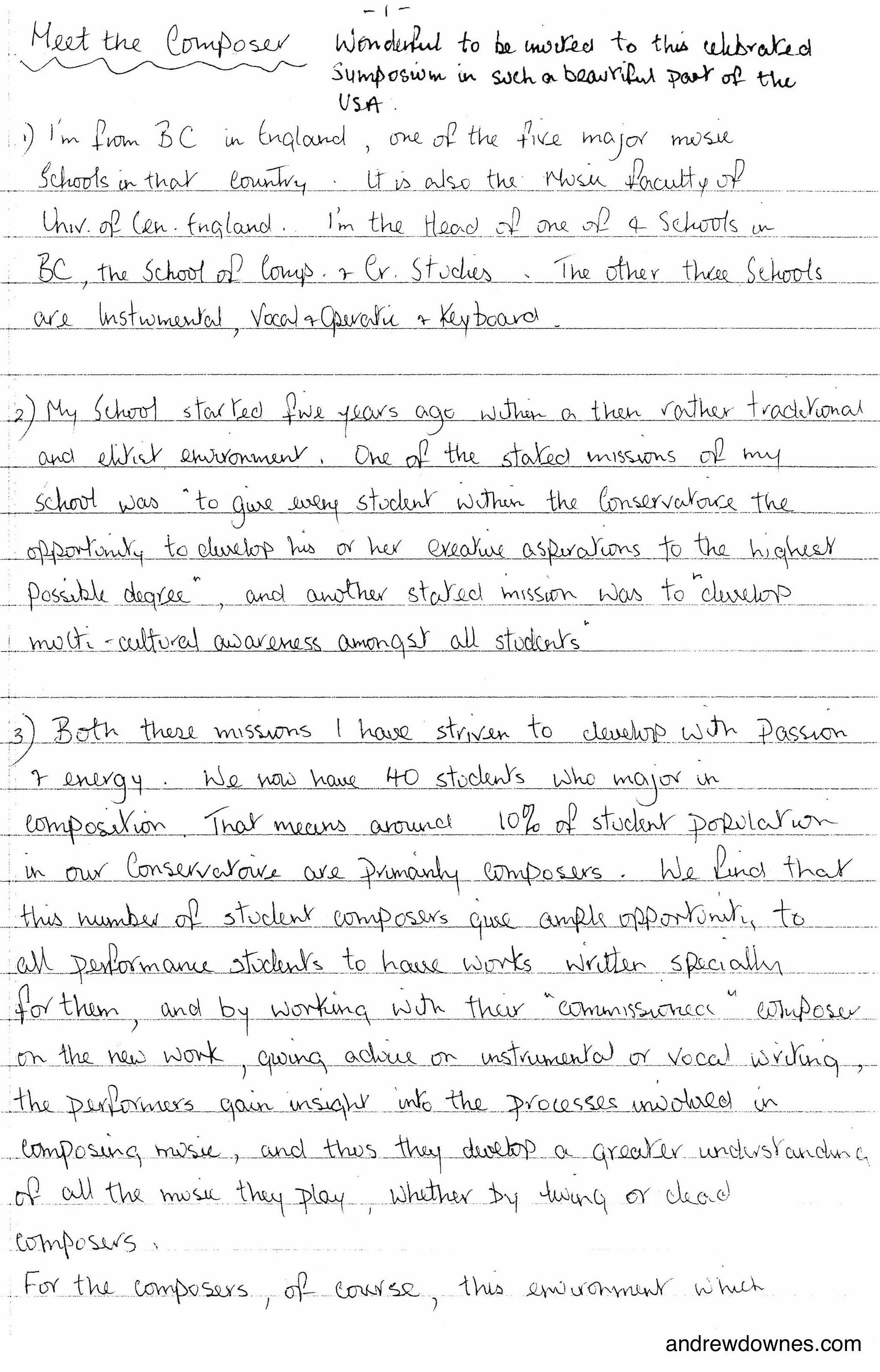 Andrew Downes talked about his compositions and work as Head of Composition and Creative Studies at Birmingham Conservatoire, UK.