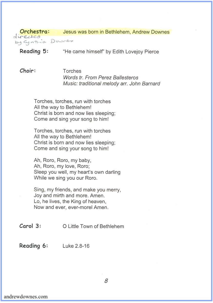 Over the years I have performed individual movements from the Cantata (particularly Movement 3, Lullaby) quite often in Christmas concerts and church services in our area with many local musicians, adapting the instrumentation to the players I’ve had available.