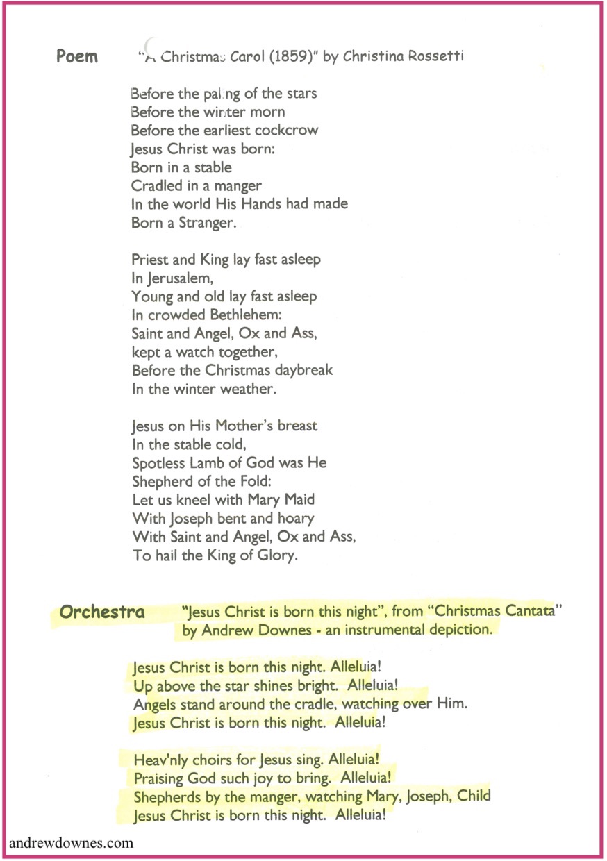 pupils his Christmas Cantata Opus 4. (Although Andrew wrote a lot of