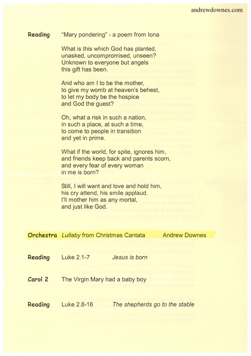 Christmas Cantata was composed by Andrew for and first performed by the Chamber Choir,