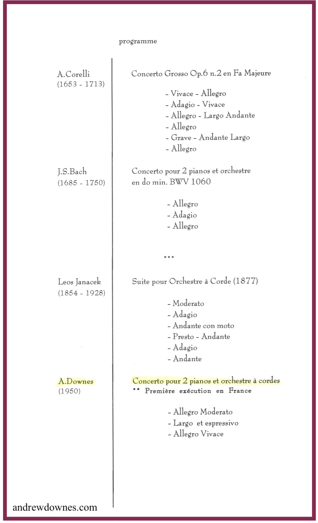 An introductory paragraph to set the scene for Andrew’s first Double Concerto is necessary: