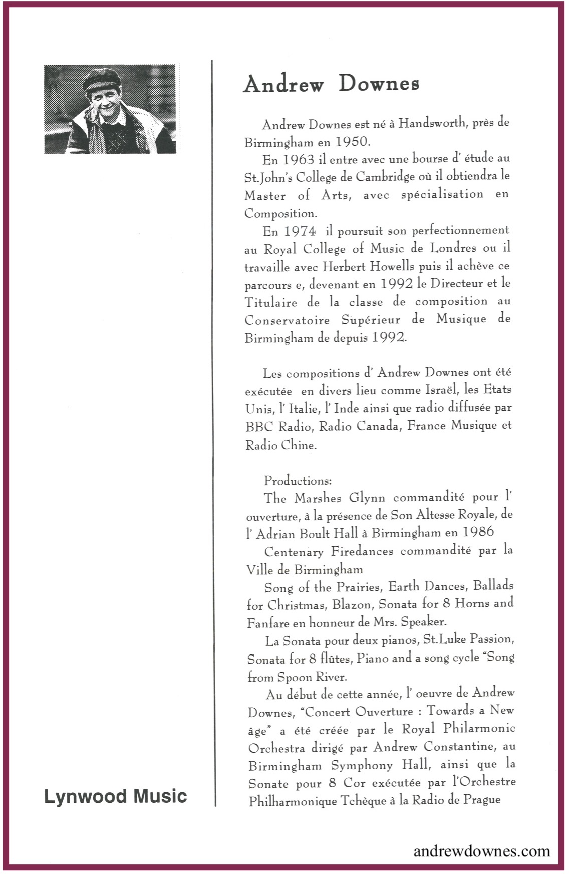 If you have performed in any of Andrew Downes' works or come to listen, please share your experiences in the Premieres Blog! Also see what others have said. Thank you so much for your contribution.