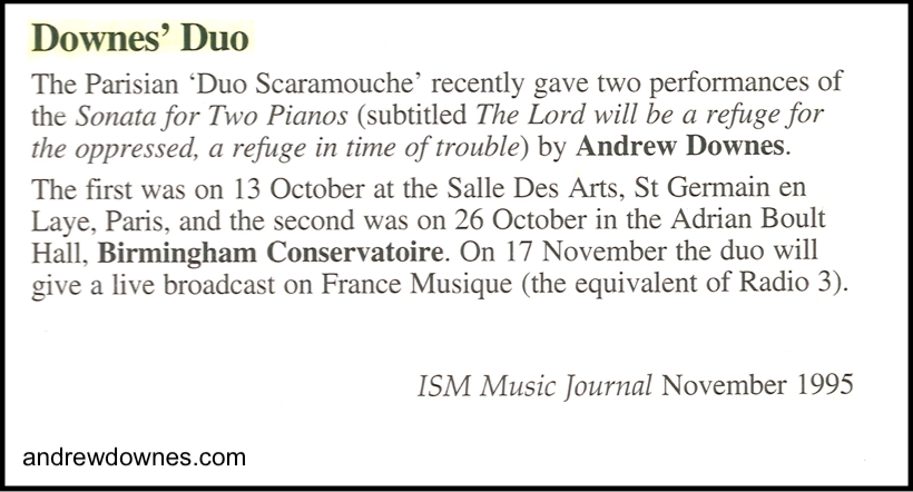 November 1995: Andrew Downes' Sonata for Two Pianos