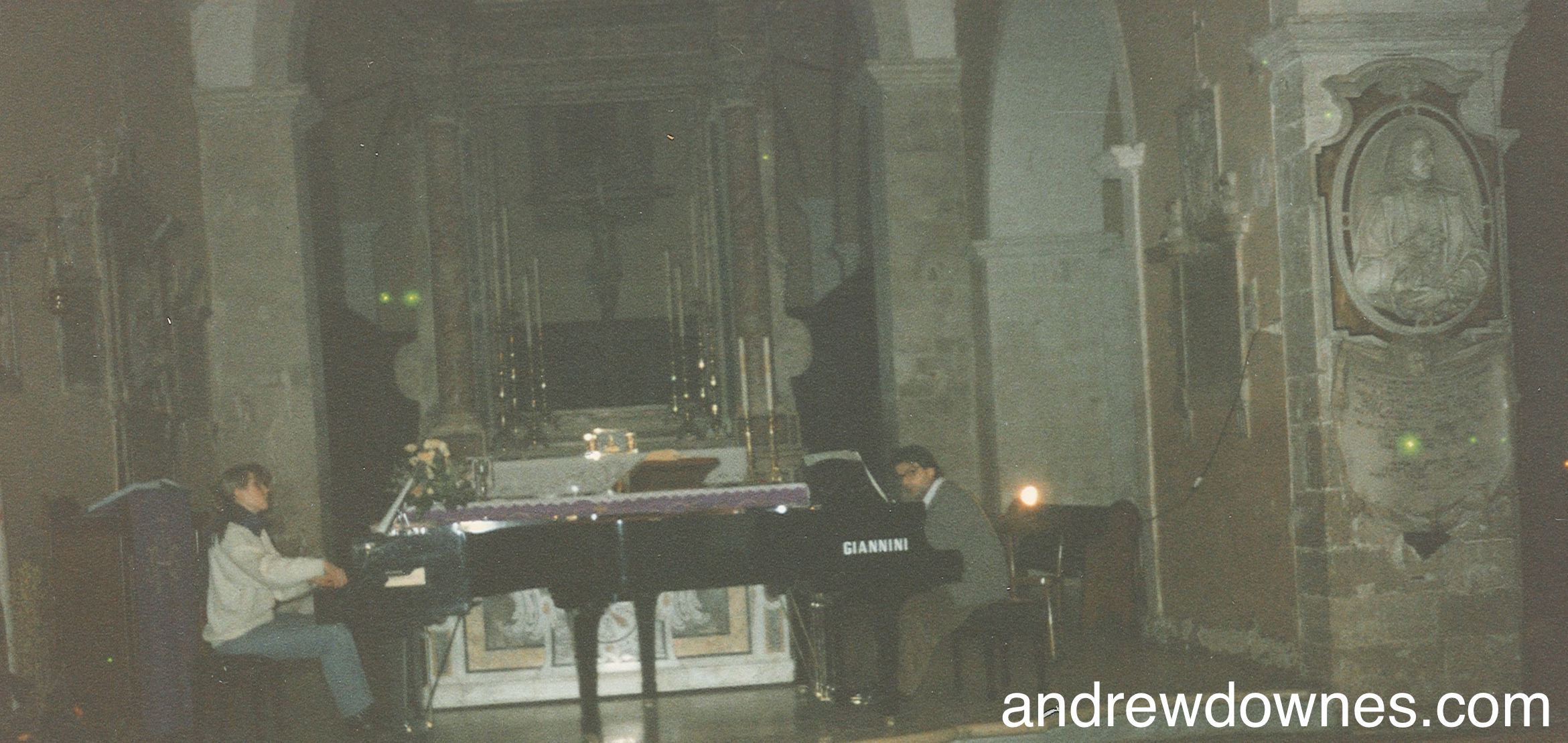 Andrew Downes' Sonata for 8 Pianists and 4 Pianos, at the Conservatorio Nicolo Paganini in Genoa, 2002: