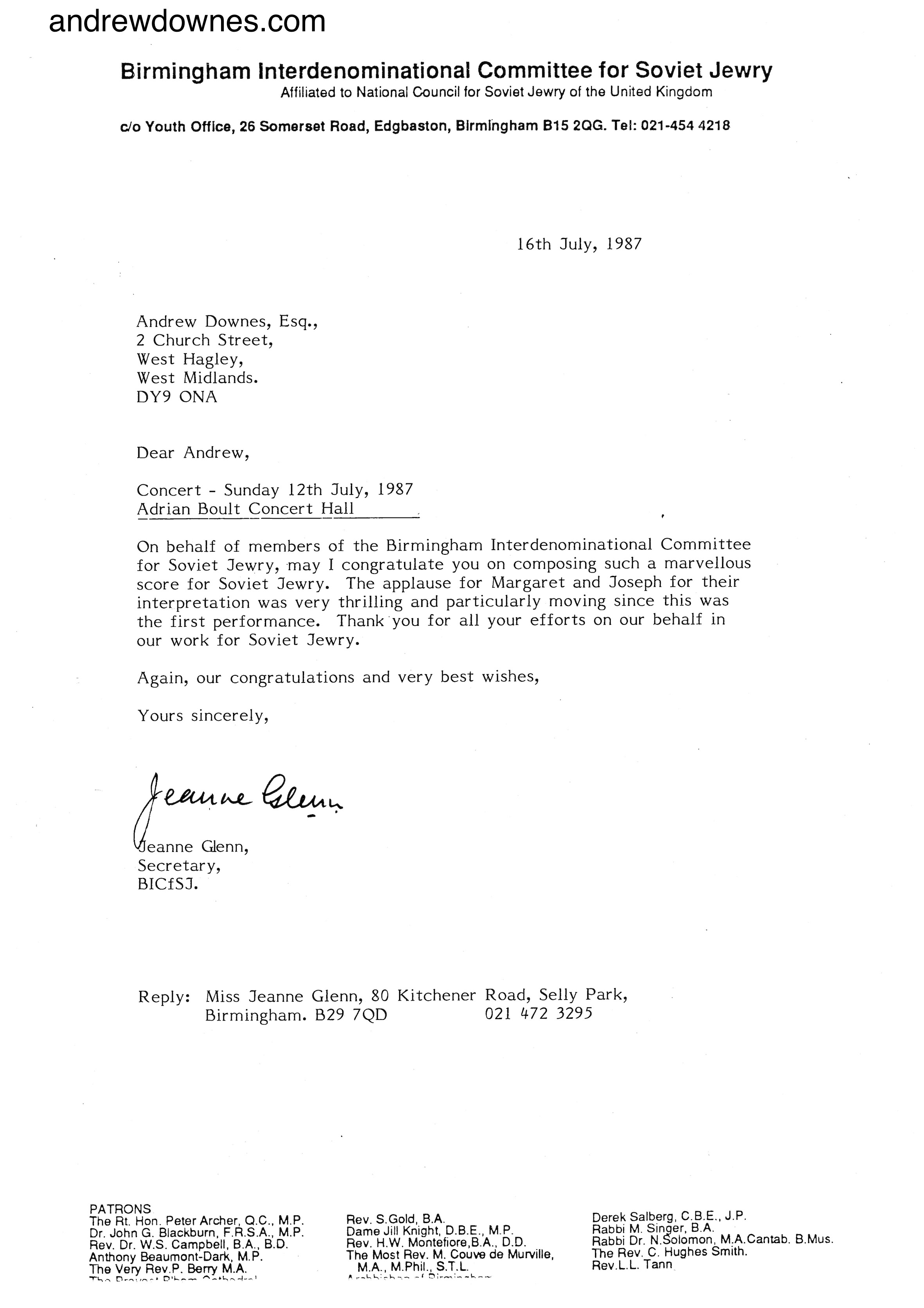 Andrew was commissioned to compose his Sonata for 2 Pianos by Joseph Weingarten and Margaret Newman, 2 leading concert pianists, who had been asked to give a piano duo recital in aid of the Interdenominational Society for Soviet Jewry. This society existed before the fall of Soviet Communism and was created to help Jews who were kept in the USSR against their will.