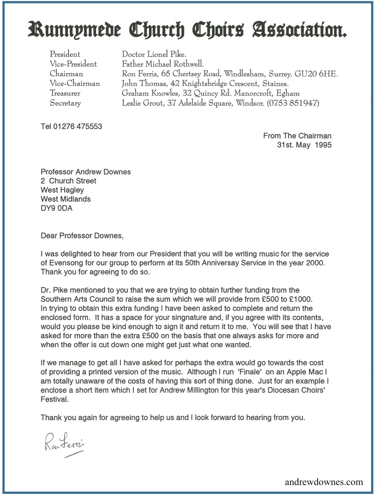 Lionel Pike wrote of the event in his letter to Friends of Royal Holloway Chapel Choir: