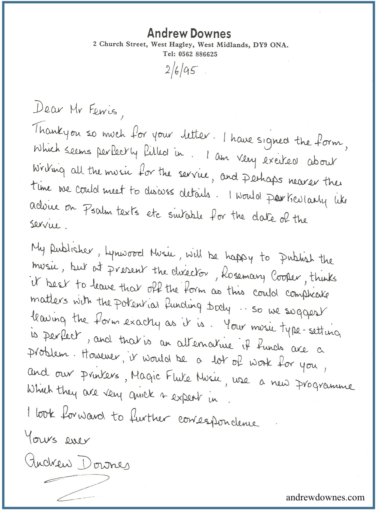 A later performance, by the Clent Hills Singers, conducted by Andrew himself, took place in St John's Church, Hagley, Worcestershire, in December 1989. Anna, Paula and I sang in the choir, and I loved it.