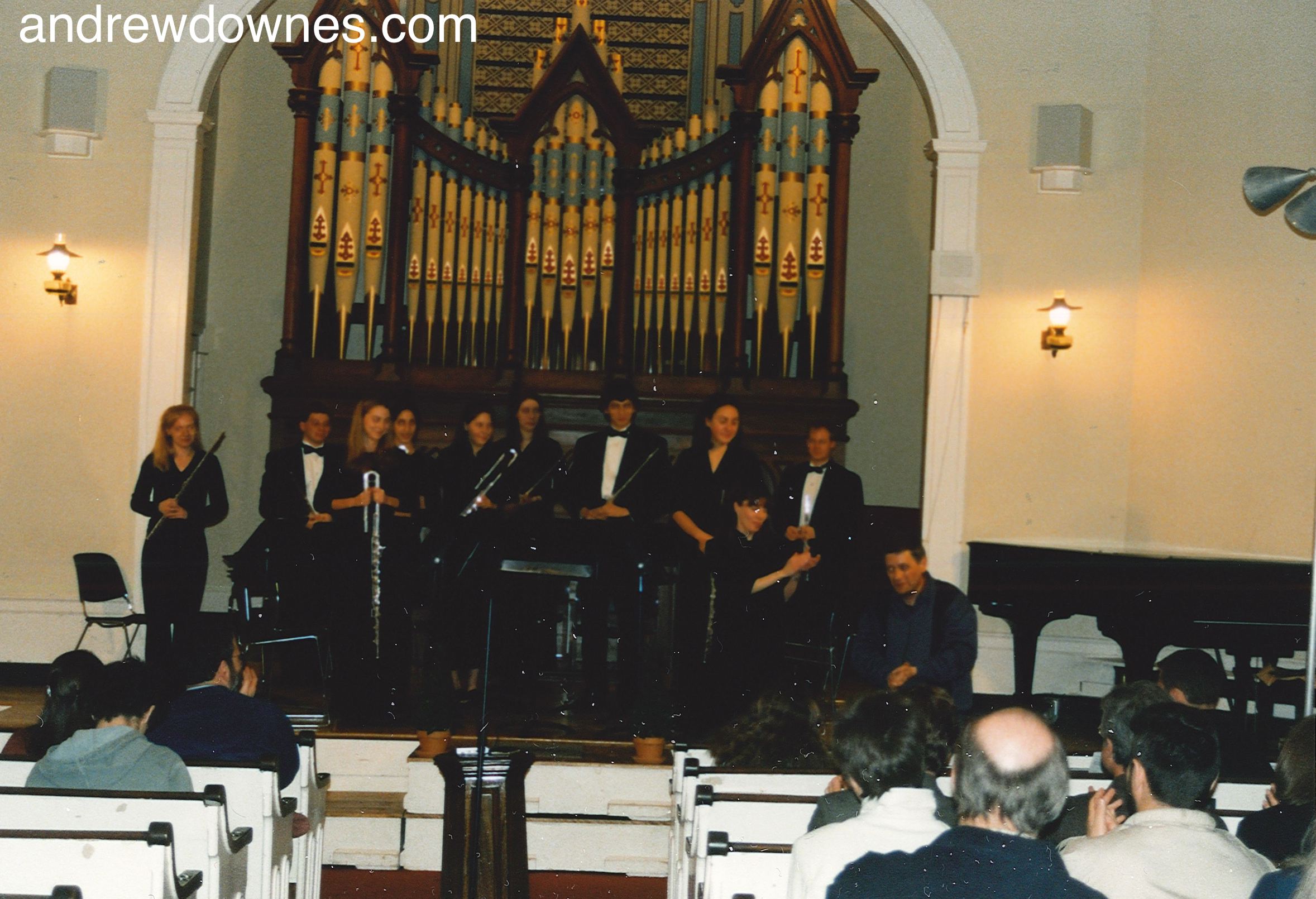 Below: Performance of works by Andrew Downes, Massachusetts Flute Choir directed by Danielle Boudrot, Follen Church, Arlington, Massachusetts, USA, April, 2000