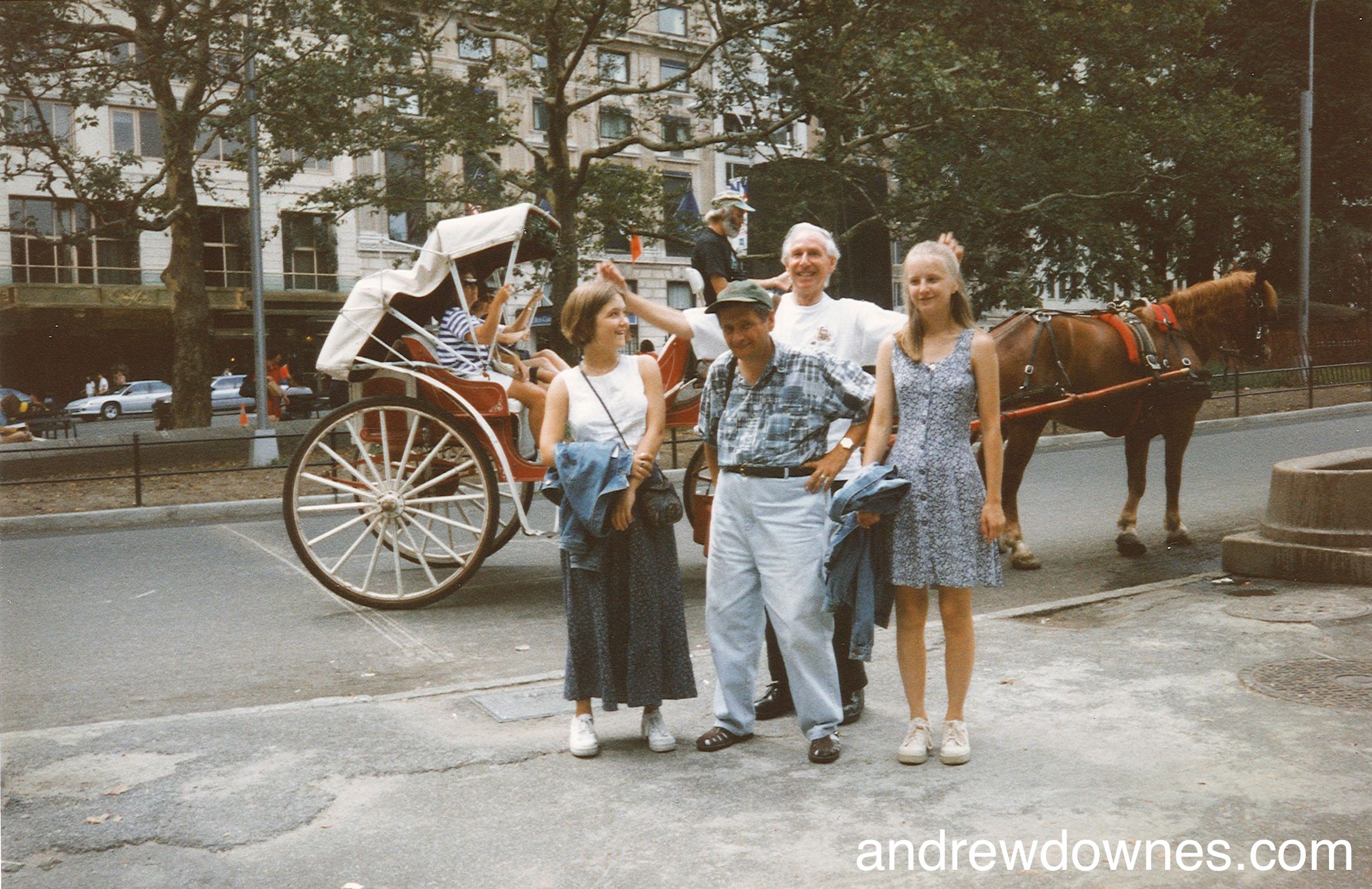 In August 1996 Carol Kniebusch Noe, flute professor at the James Madison University of Virginia and founder of the first American flute choir, conducted the world premiere of the Sonata for 8 Flutes/Flute Choir in New York, at the Convention of the USA National Flute Association. The Convention's Professional Flute Orchestra performed it in the ballroom of the enormous Mariott Marquis Hotel. We went with our daughters Anna (then 19) and Paula (16) to the event. They were very excited to spend time in the Big Apple.