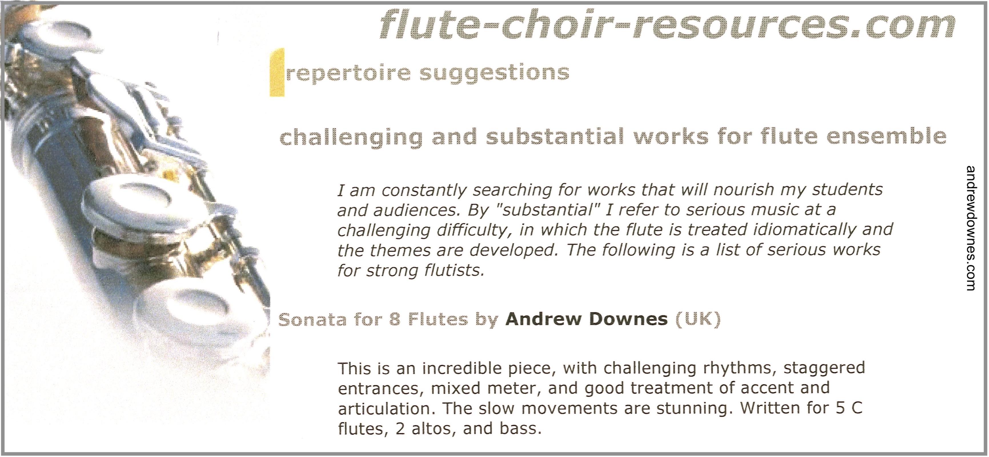 When I was checking the typesetter's work on the Sonata for 8 Flutes or Flute Choir, I realised what a masterpiece Andrew had composed.