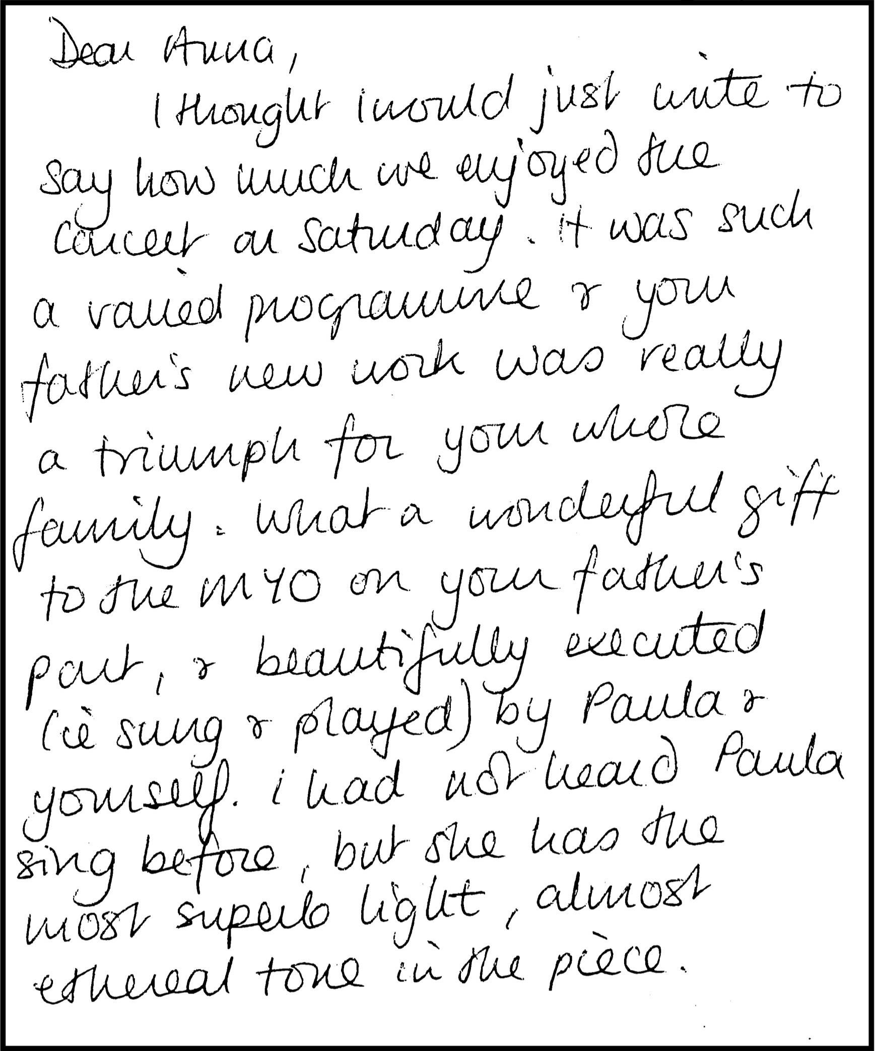 "You did do him proud Anna. It was lovely to hear so much of Andrew's music."