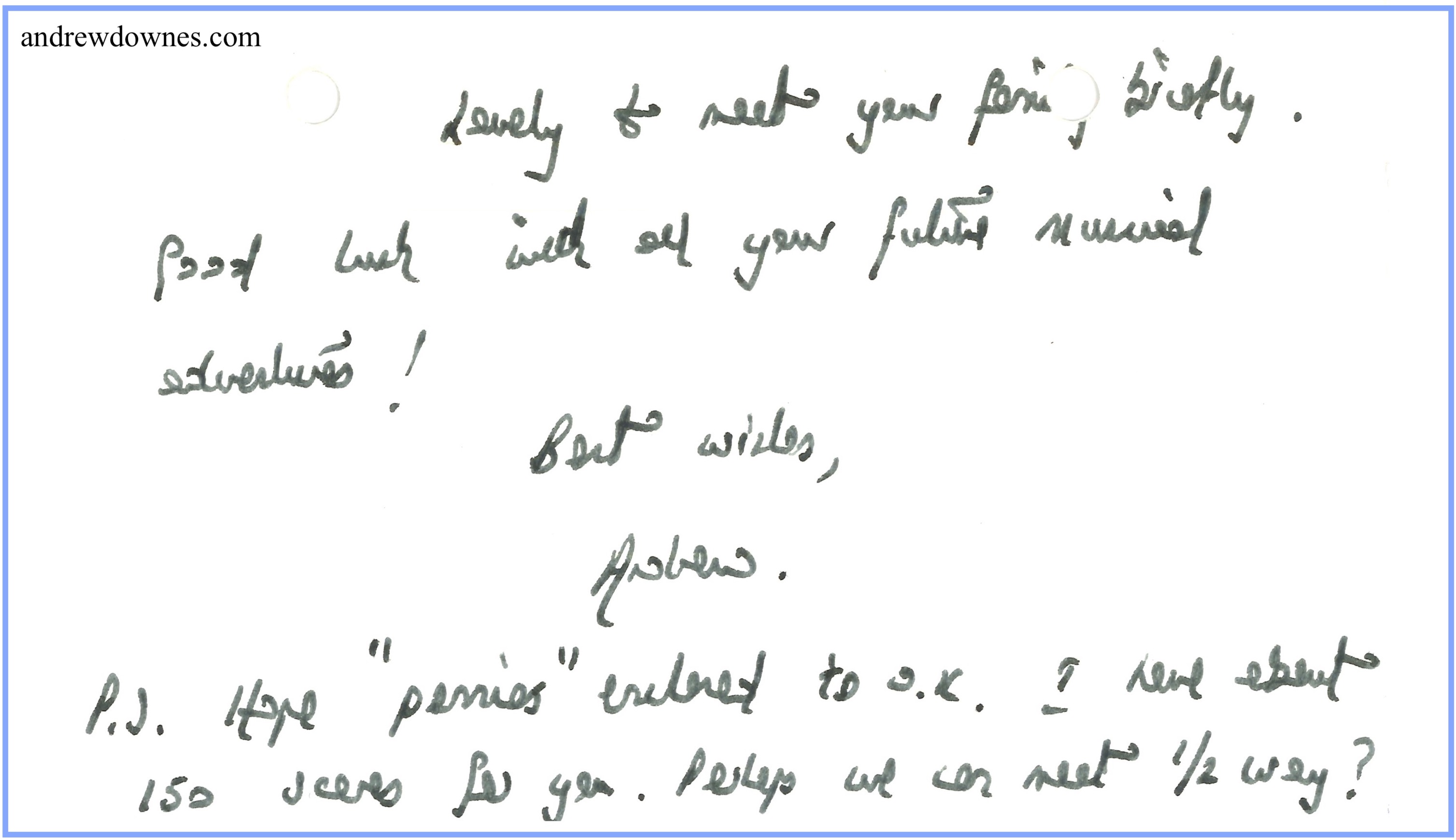 knowledgeable of all conventions in music, to do a final proofread of the score. I then spent many months proofreading the parts with Andrew's original pencil score.