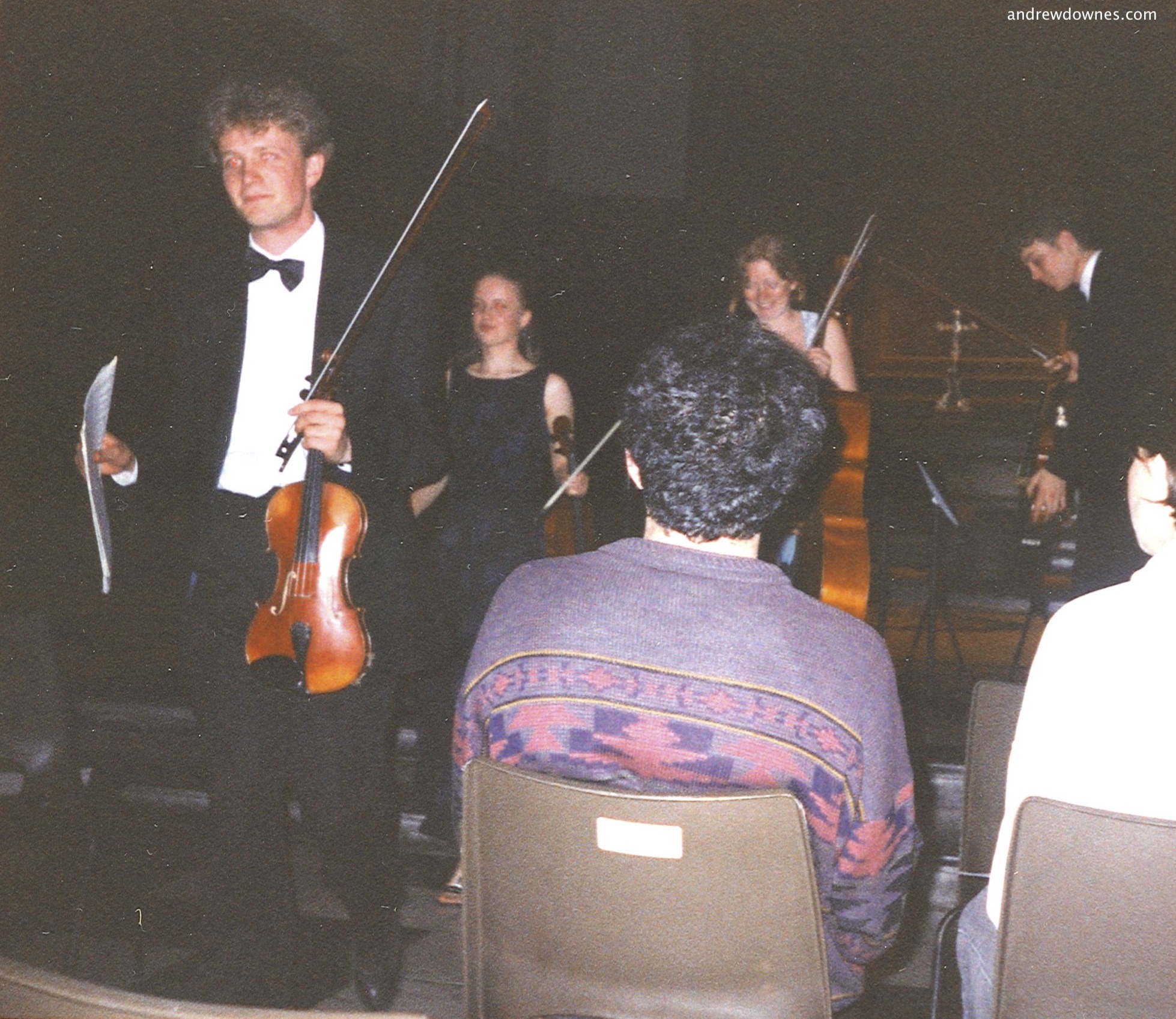 When our daughter Paula was a student at Cambridge, she formed, with 3 fellow students, the Thomas Quartet. They performed Andrew's String Quartet No.3 in St John's and Trinity colleges in March and May 1999. Paula had the task of mimicking the tabla on her violin. The stunning performance by the Thomas Quartet in the wonderful acoustics of the Chapel of Trinity College can be heard here.