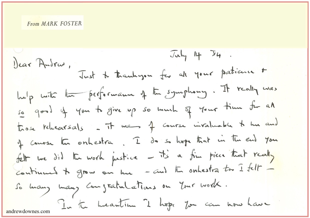 Letter from conductor Mark Foster: