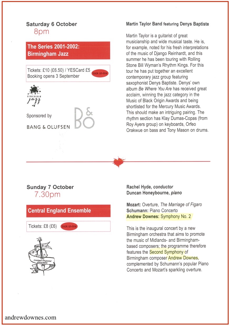 organised took place at the CBSO Centre, Birmingham, in October 2001.