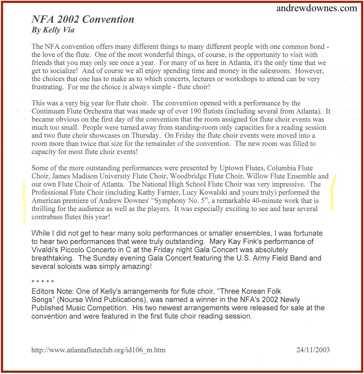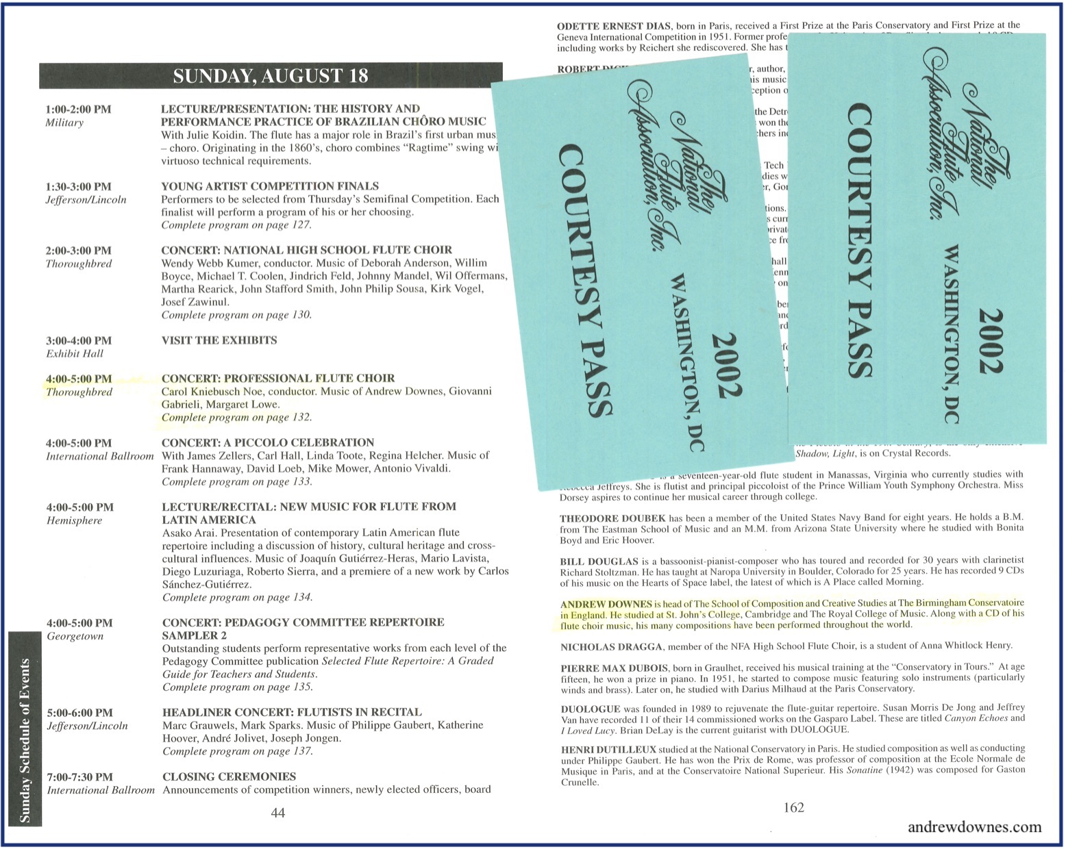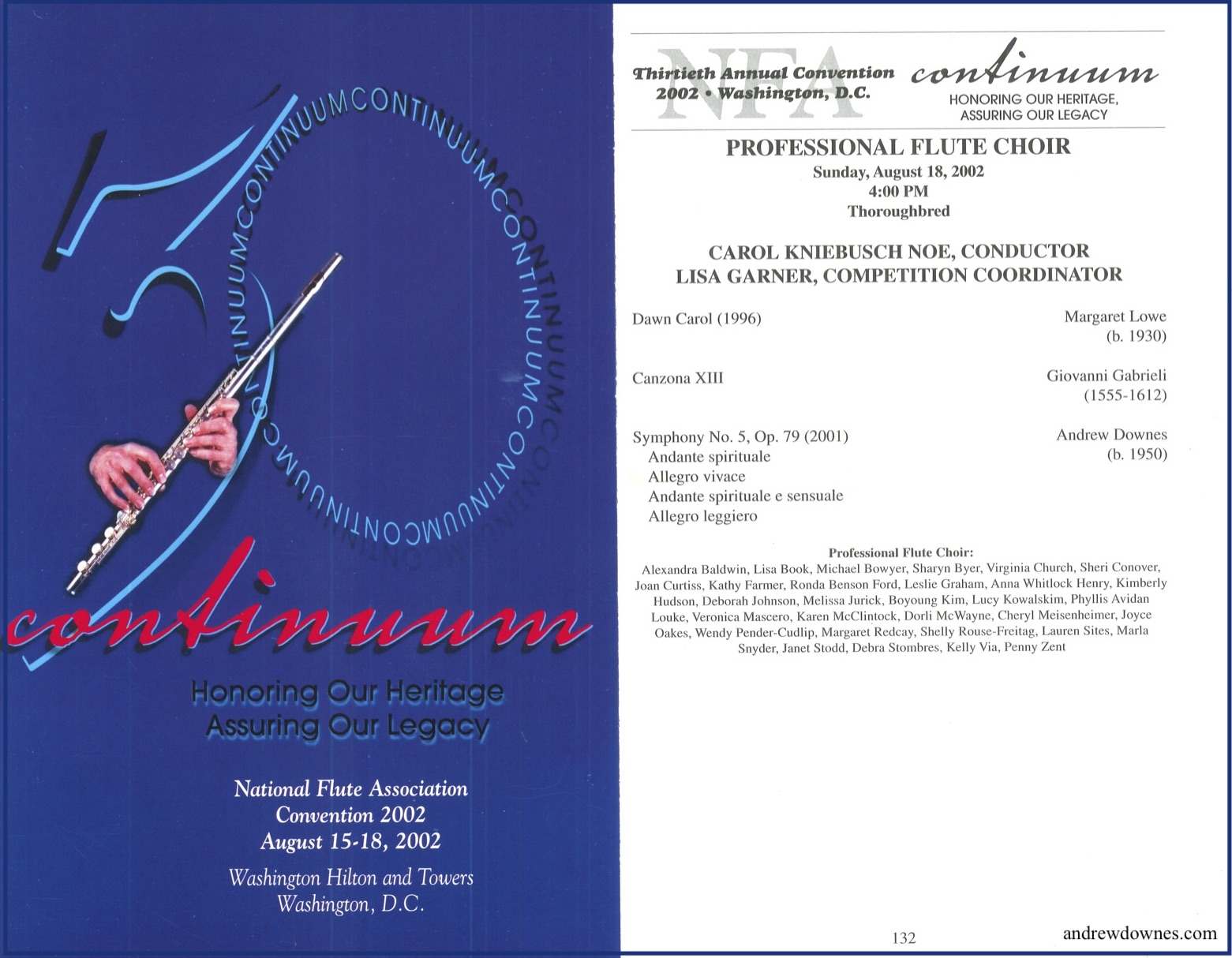 Performance of Andrew Downes' Flute Symphony by the USA National Flute Convention's Professional Flute Choir directed by Carol Kniebusch Noe, Washington DC, August 2002