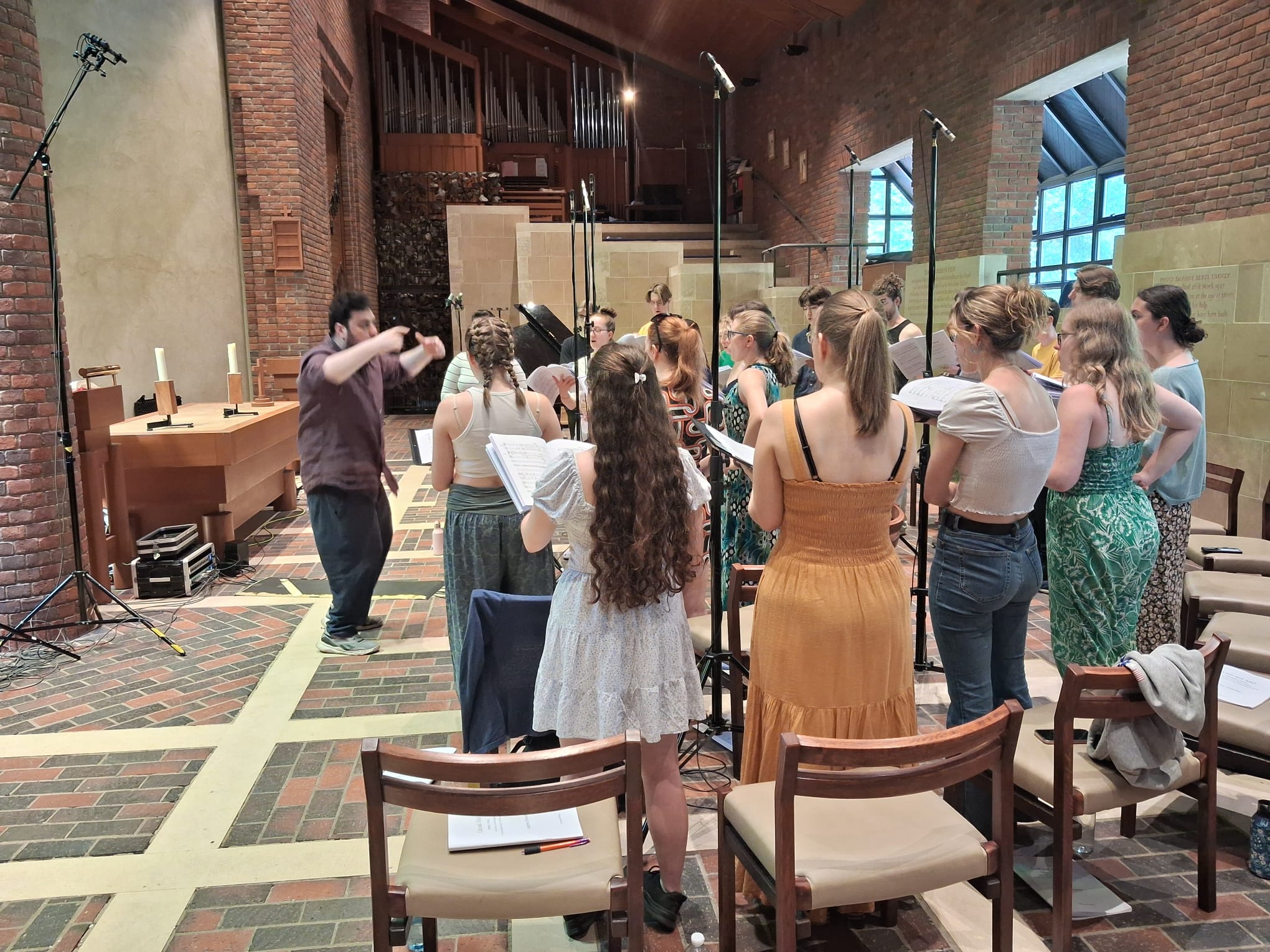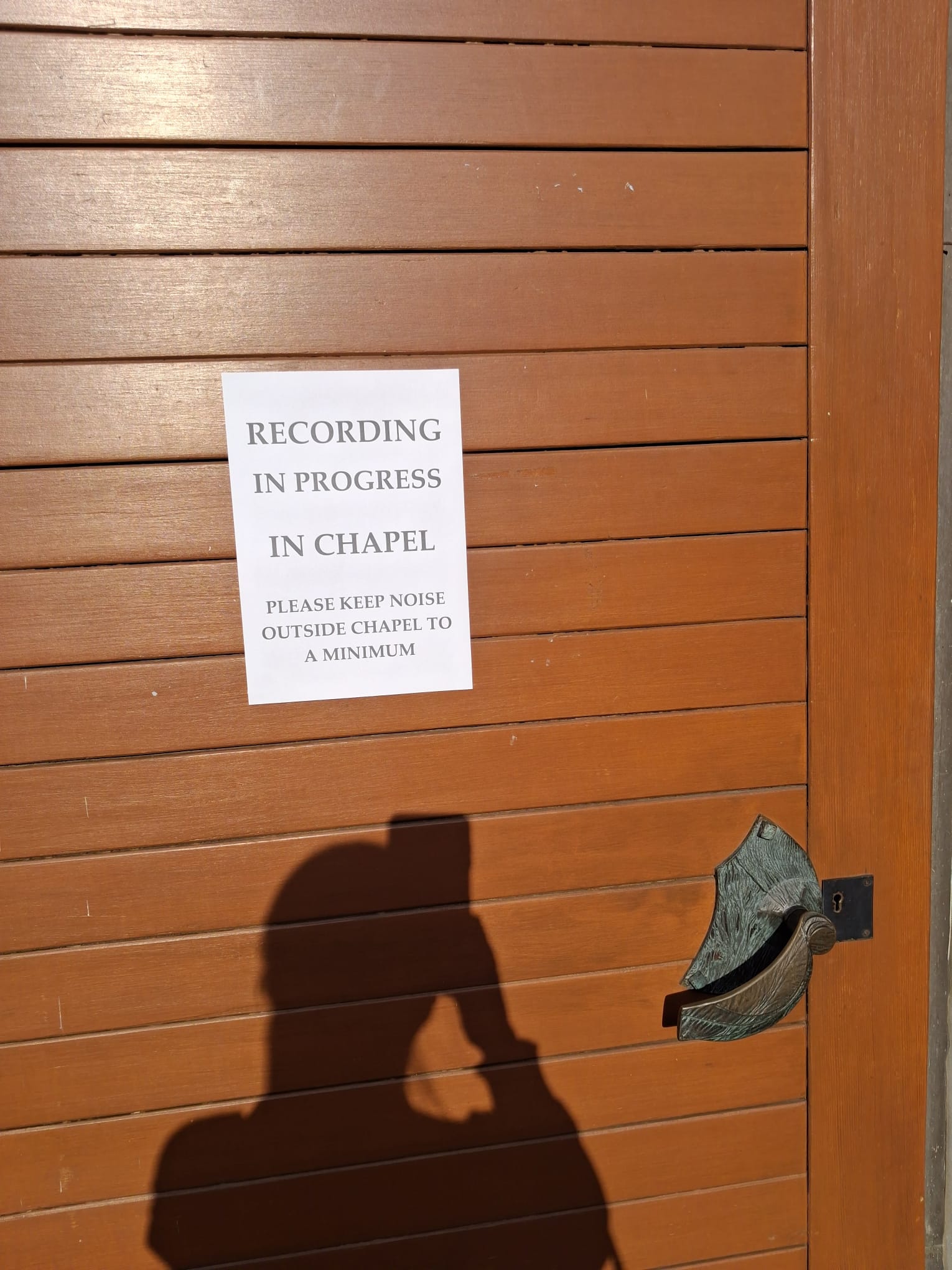 As for the music itself, it’s stunning: a very individual mix of influences and resonances, including Britten, Tippett, Howells, Copland, Stravinsky, Ligeti and many more that I can’t pin down, and coincidentally, perfectly suited to being performed in Robinson College Chapel, which is more or less exactly contemporary with the three works we were recording.