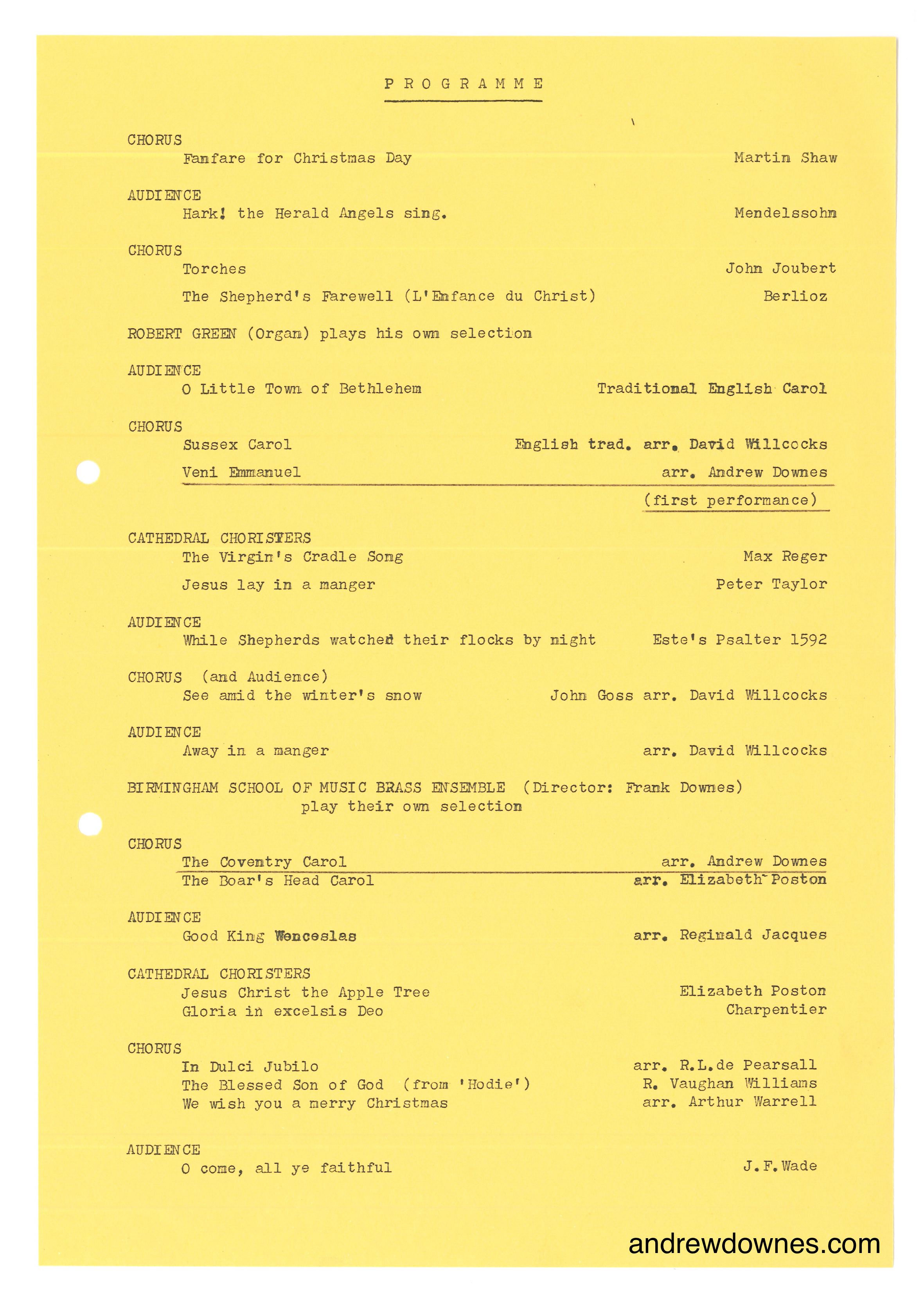 The Coventry Carol was performed by the Clent Hills Singers, conducted by Andrew himself in St John's Church, Hagley, Worcestershire, in December 1989 and was then recorded by the Clent Hills Singers, conducted by Andrew, for the cassette, "Christmas in the Forest" (© 1989 Forest Music). I sang in the choir for these performances, and have very happy memories of them.