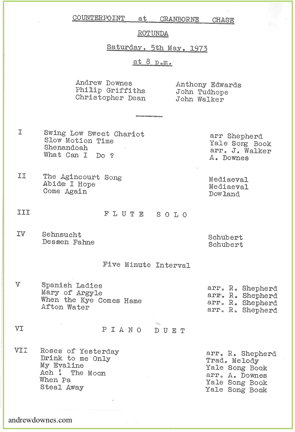 1973 Andrew composed a song for Counterpoint to words by the 17th