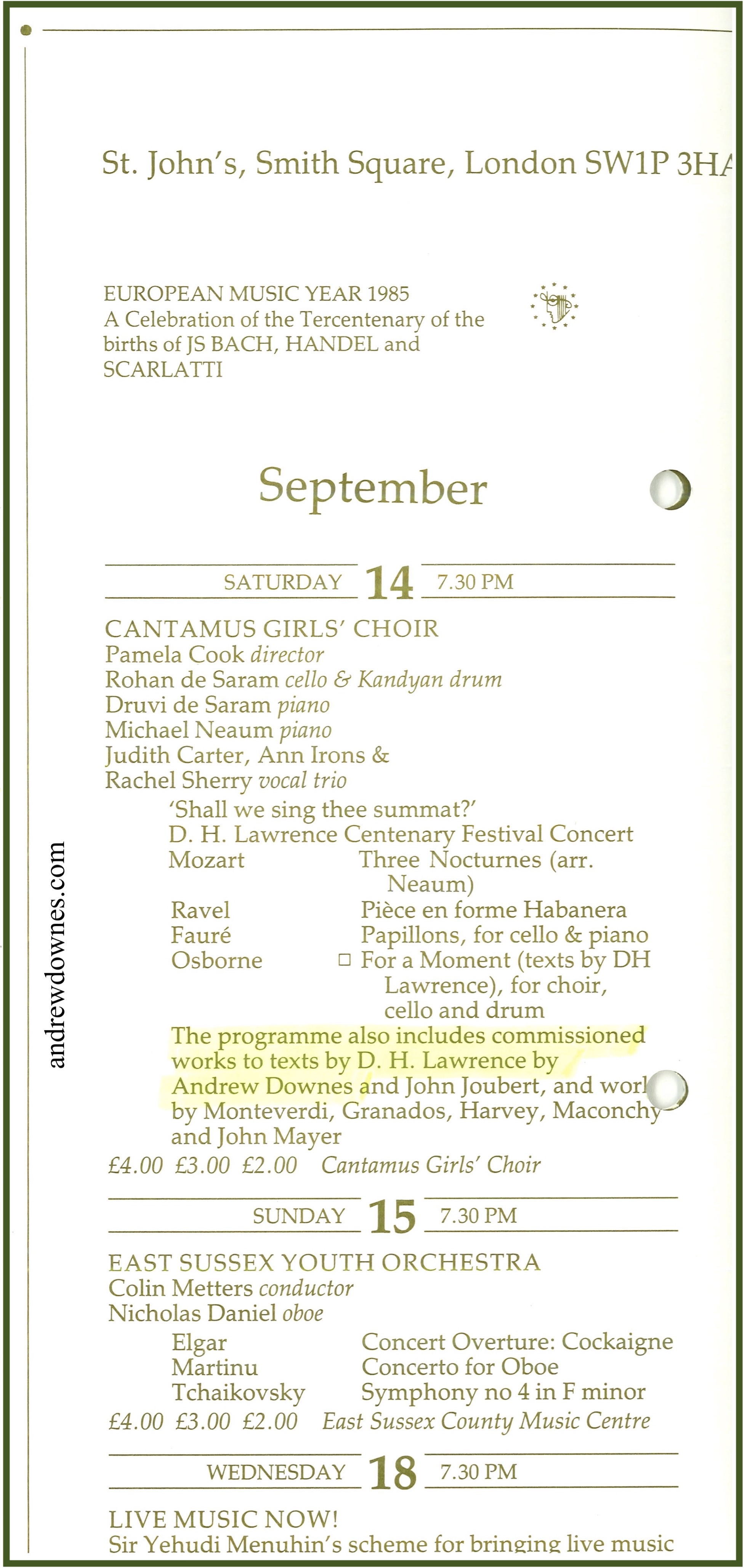 place in St John's, Smith Square, London, on September 14th 1985 in the